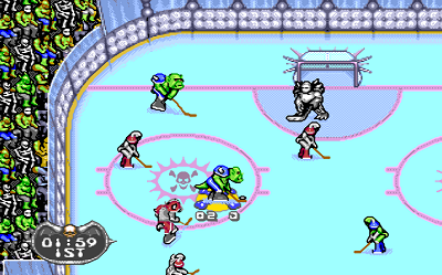 Онлайн игра под названием Mutant League Hockey - это развлекательный 16-битный продукт для приставки Сега, который был создан компанией Electronic Arts и выпущен в 1994-м году.