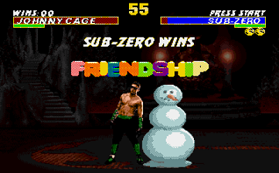 На экране выбора бойца есть некий таинственный серый фирменный значок, который находится в правом нижнем углу. Выбрав его для поединка, Вы начнете битву, управляя героем по имени Noob-Saibot. Однако, как только поединок начнется, он моментально потеряет всю энергию и упадет.